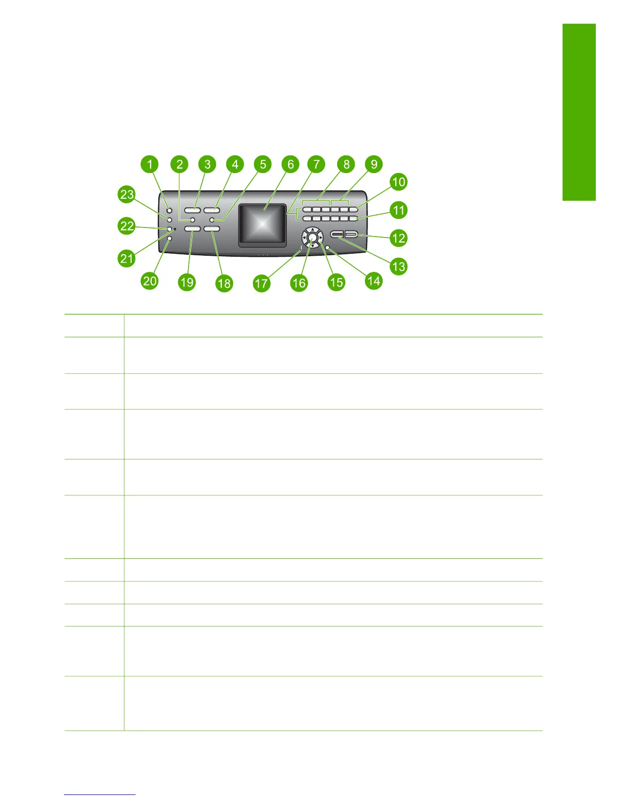 1 On: Turn the HP All-in-One on or off. When the HP All-in-One is off, a minimal