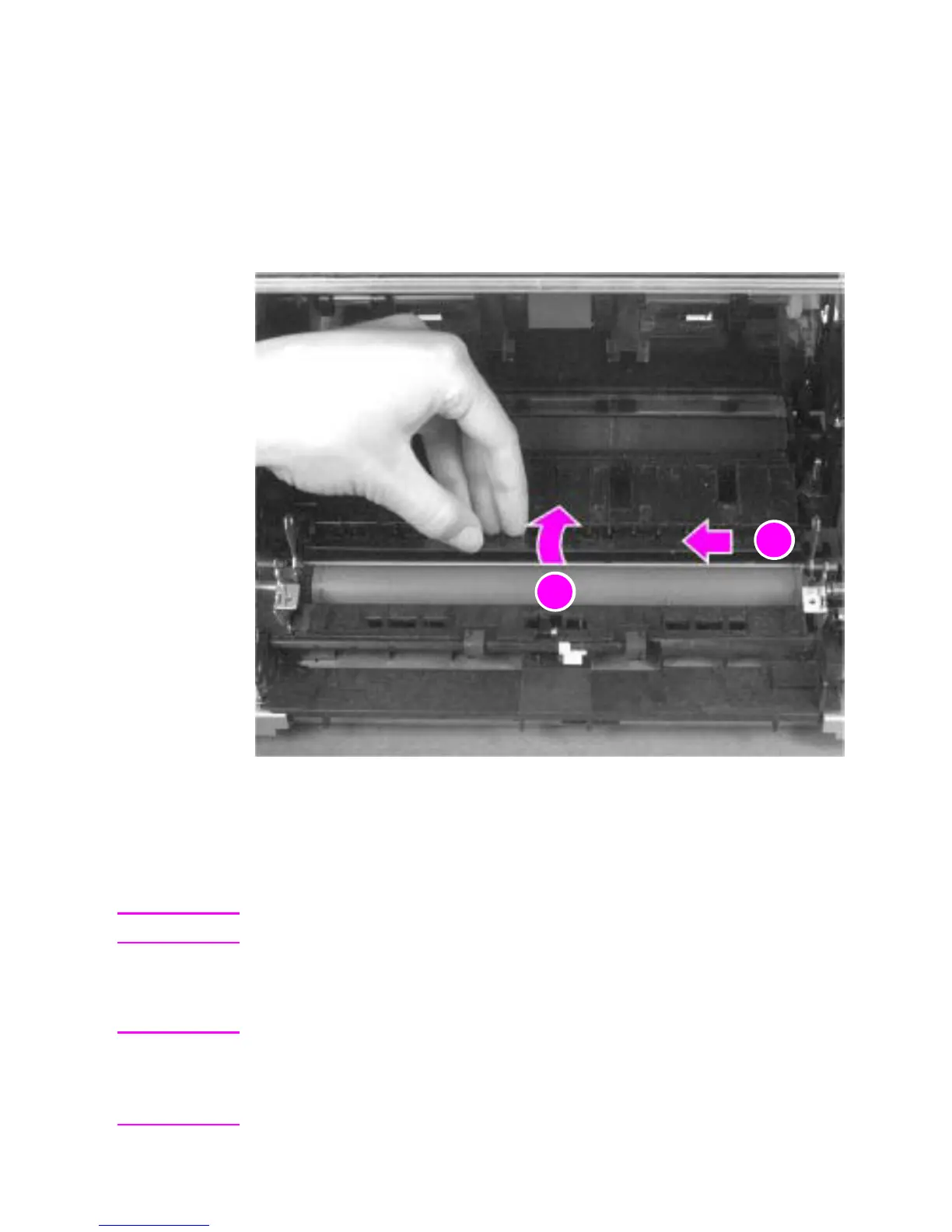 Remove the pressure roller guide by lifting the edge (callout 1)