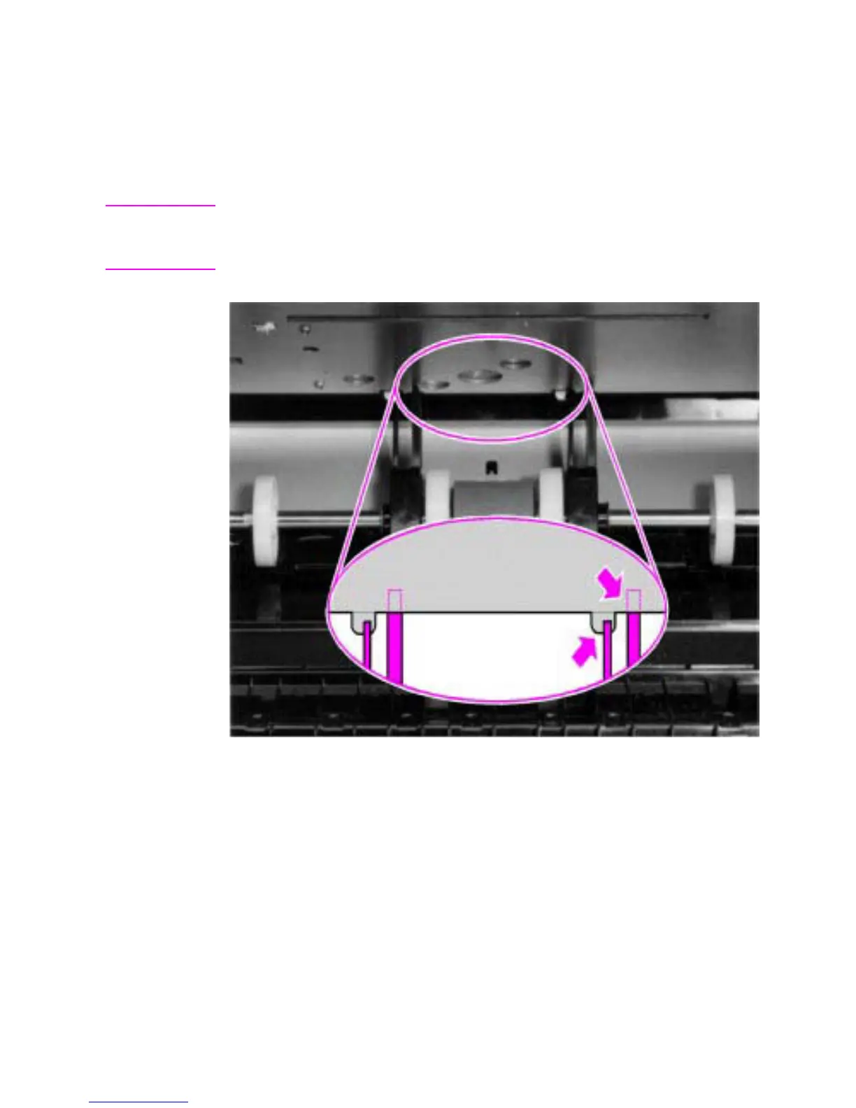 Note It is important that the pickup roller is placed back in with the two idler