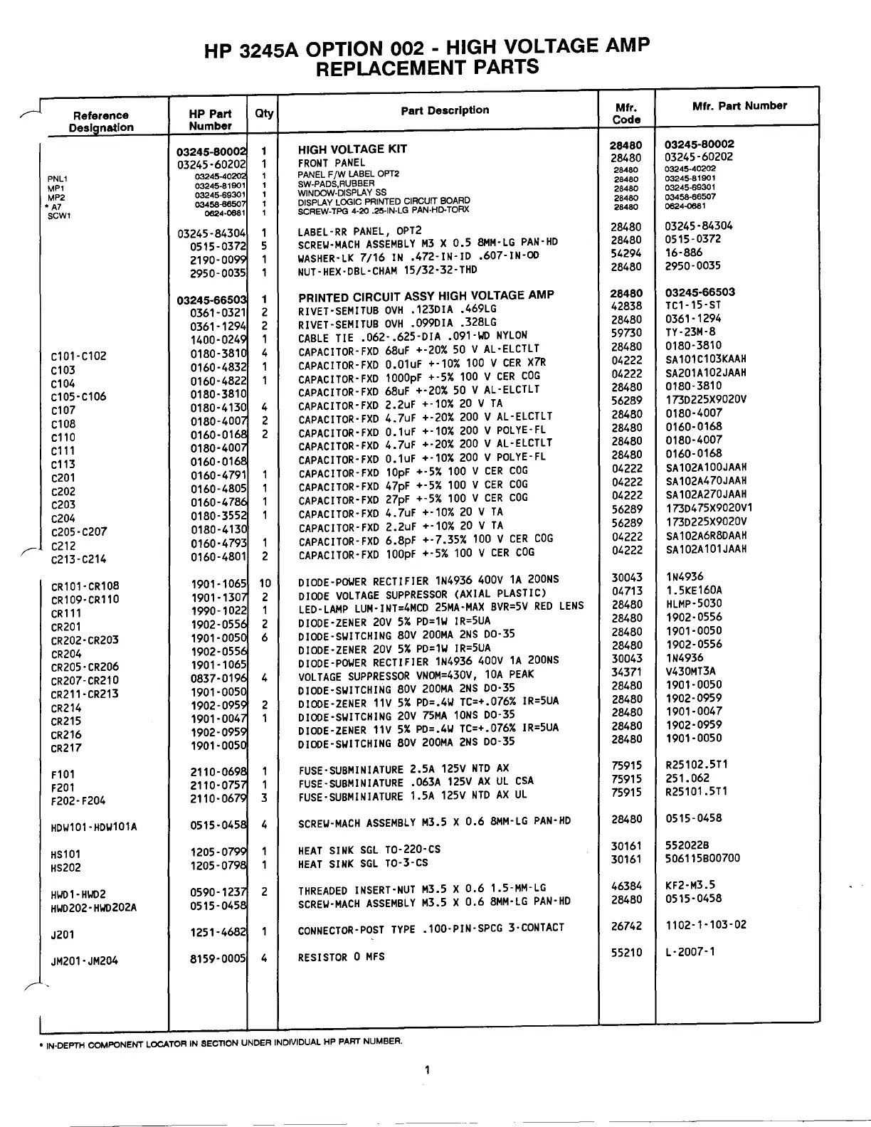 HP 3245A OPTION 002 - HIGH VOLTAGE AMP