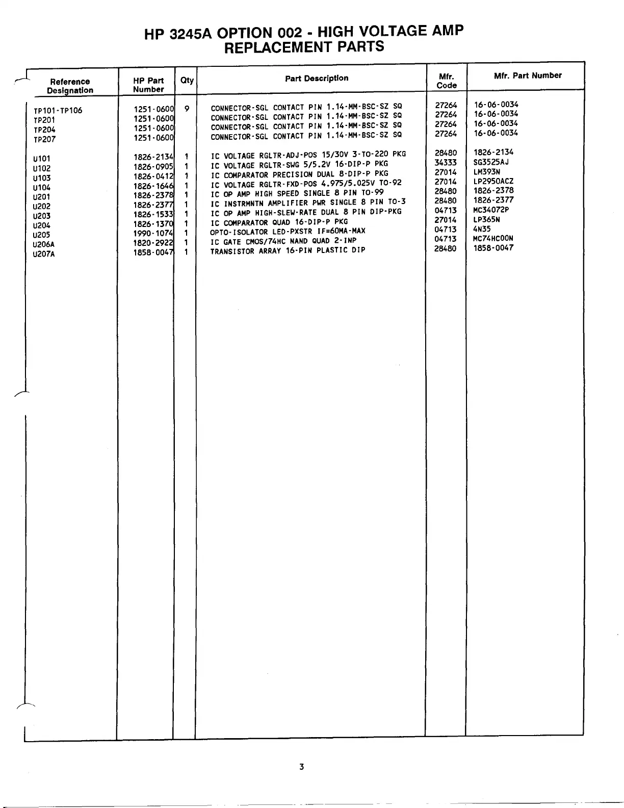 HP 3245A OPTION 002 - HIGH VOLTAGE AMP