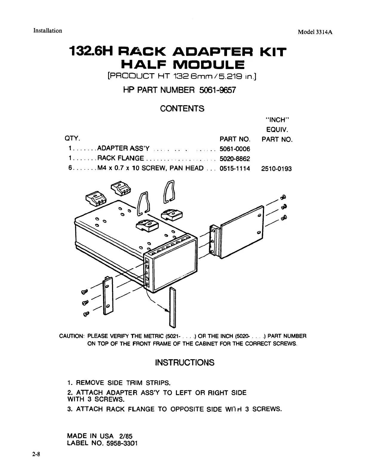 ) OR THE INCH (5020- . , . .) PART NUMBER