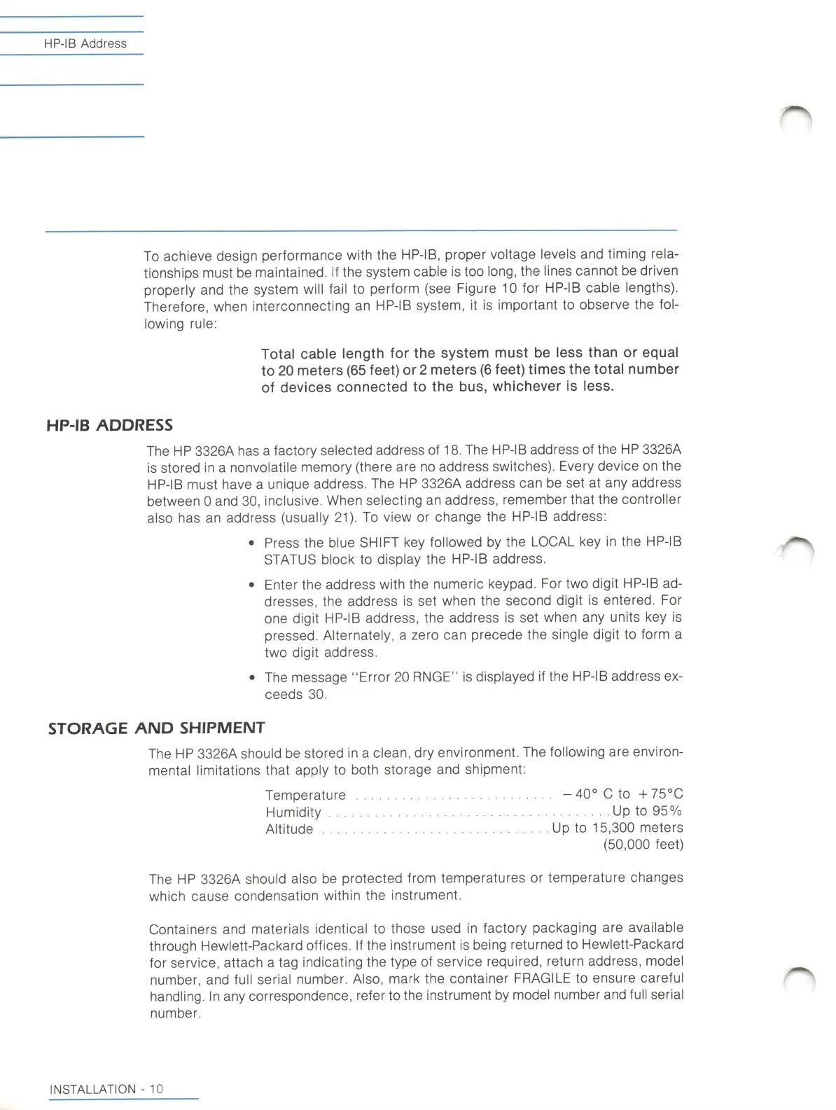 HP 3326A - Hp-Ib Address; Storage and Shipment