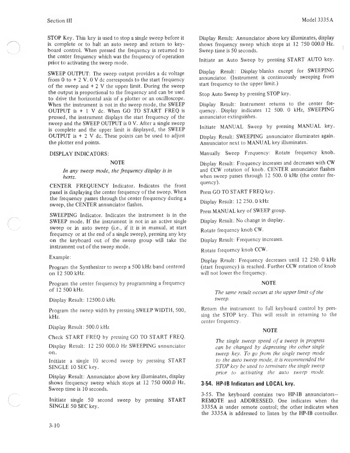 HP 3335A - Sweep Mode Control and Indicators; Sweep Mode Operation Controls; HP-IB Status Indicators and Local Control