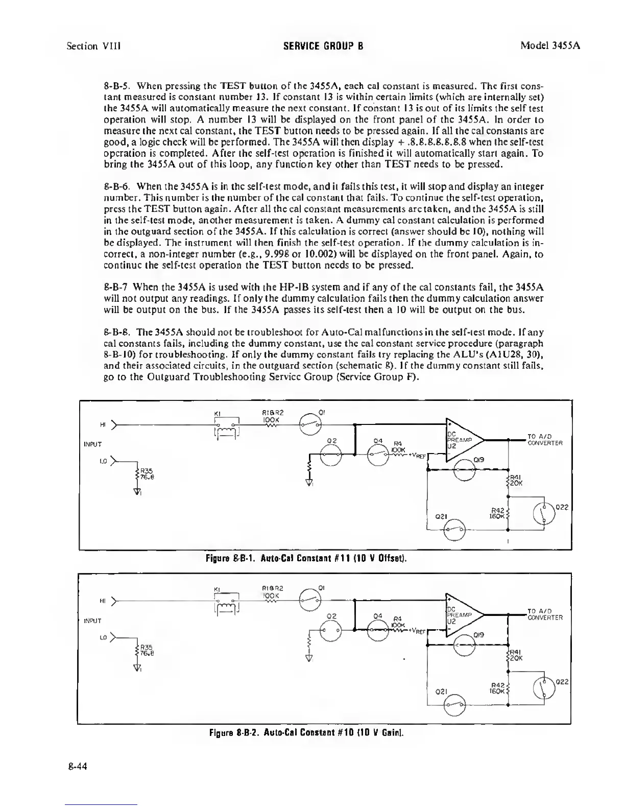 8-B-8. The 3433A should not be troubleshoot for Auto-Cal malfunctions in the self-test mode. If any