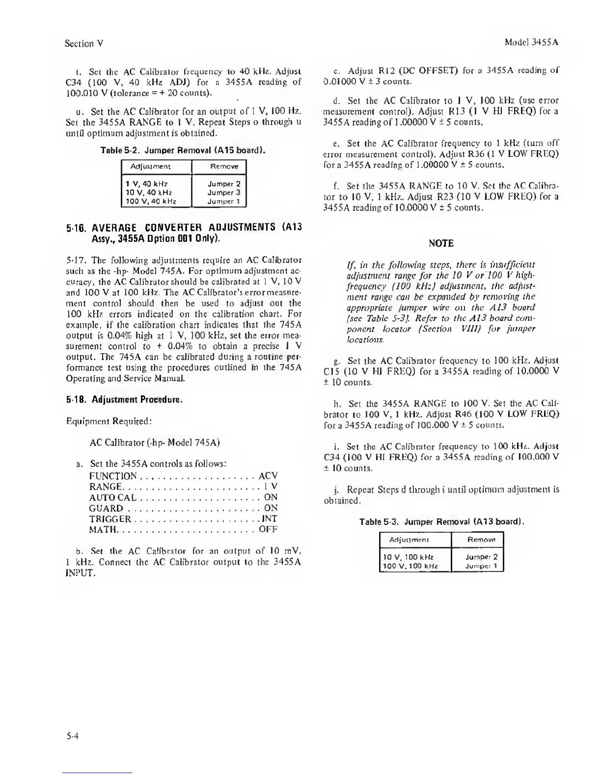 V, 40 kHz ADJ) for a 3455A