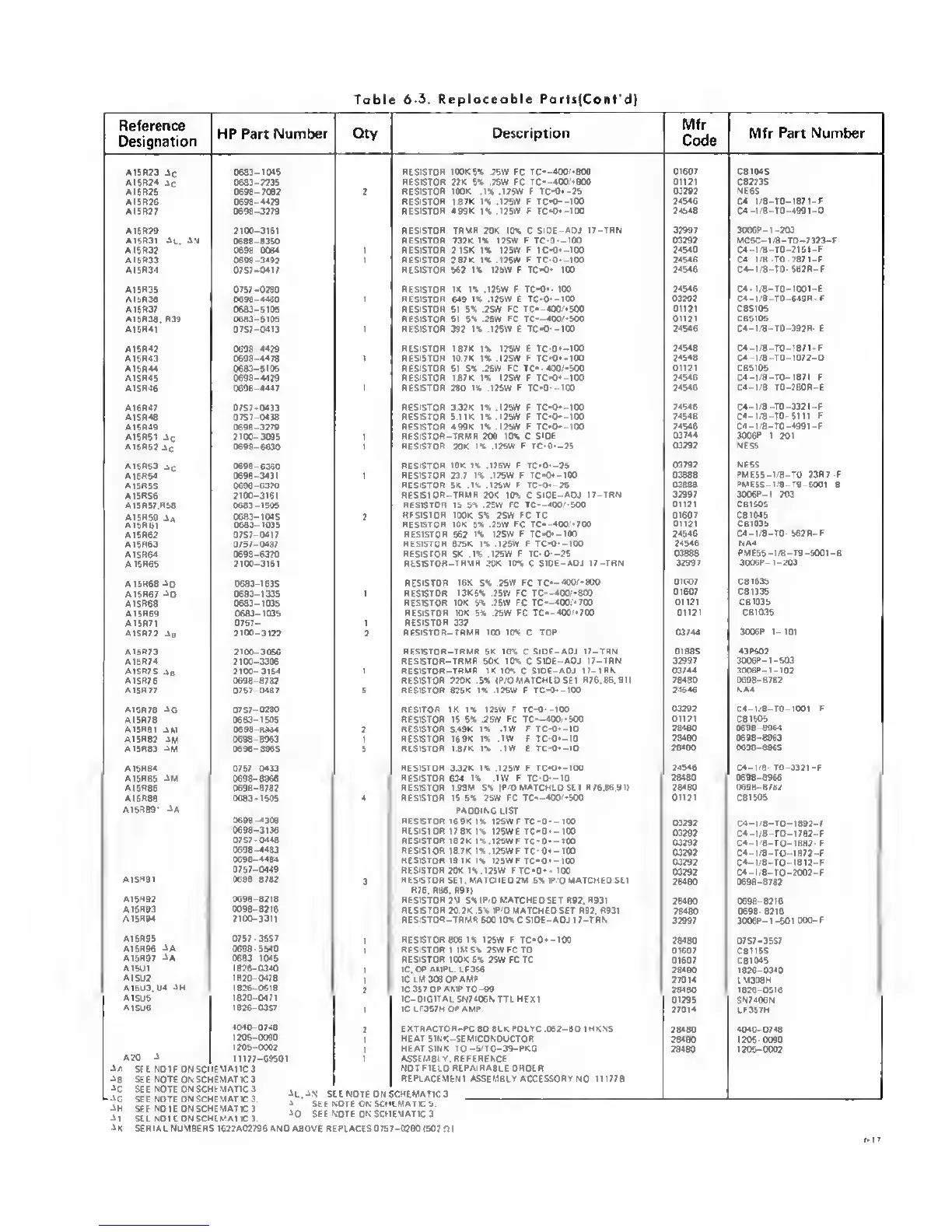 6-3. Reploceoble Parts(Cent'd)