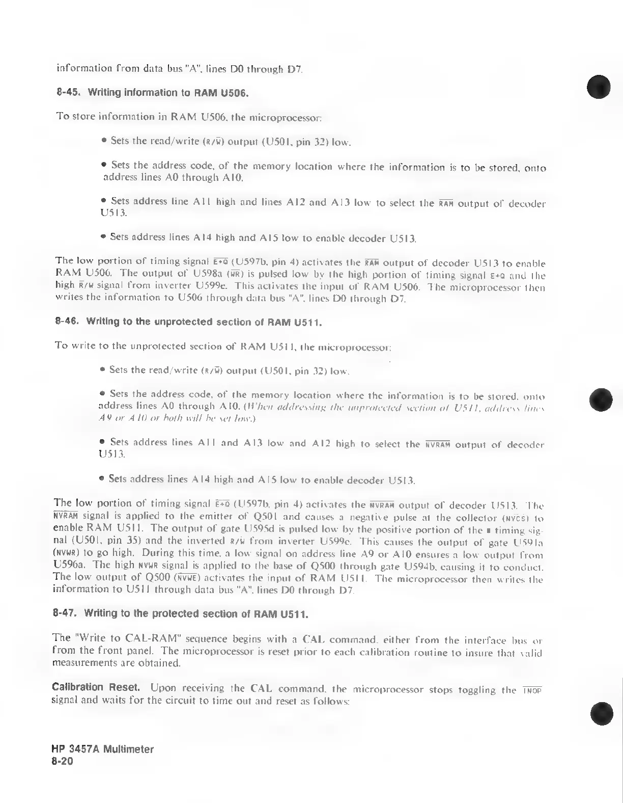 HP 3457A - 8-45. Writing information to RAM U506; 8-46. Writing to the unprotected section of RAM U511
