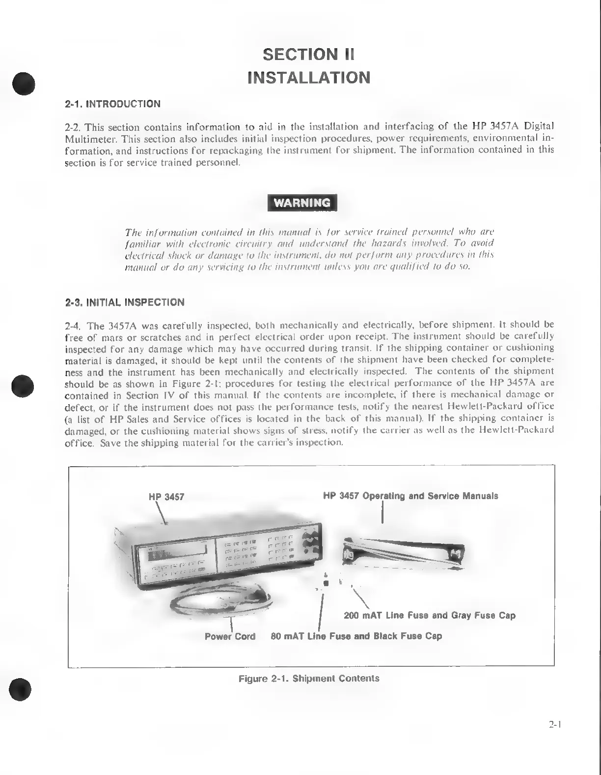 HP 3457A - SECTION II INSTALLATION; 2-1. INTRODUCTION; 2-3. INITIAL INSPECTION