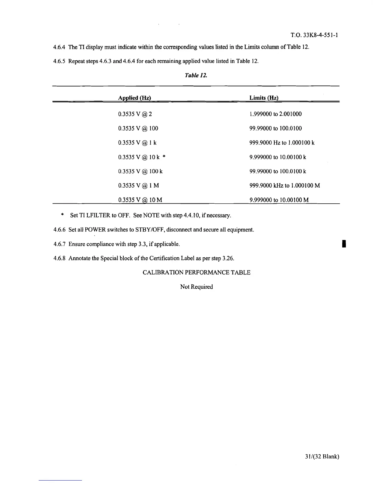 .4 The TI display must indicate within the corresponding values listed in the Limits column of Table 12.