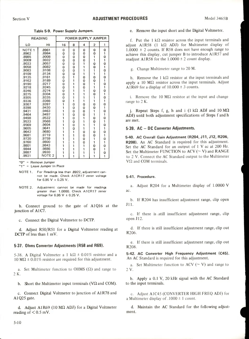 HP 3465B - Ohms Converter Adjustments (R58 and R69); AC-DC Converter Adjustments