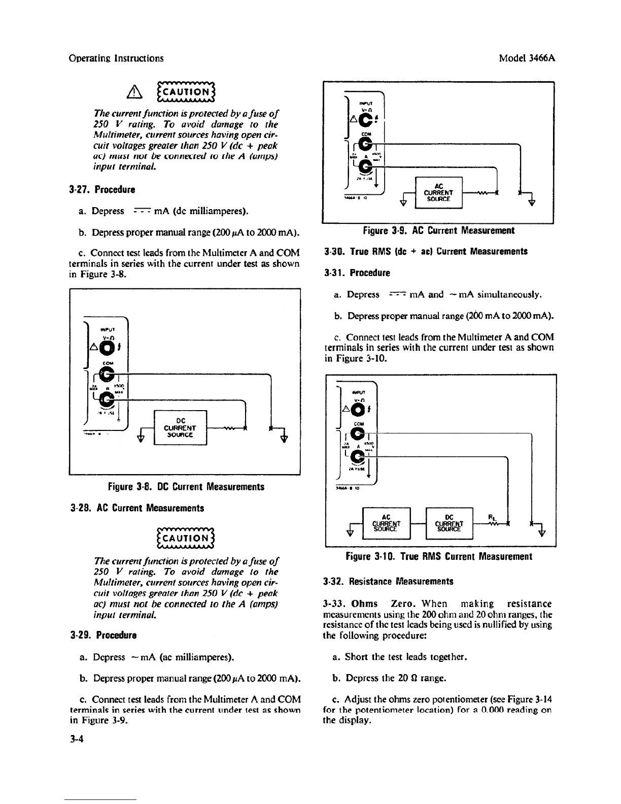 HP 3466A - Resistance Measurements; Procedure