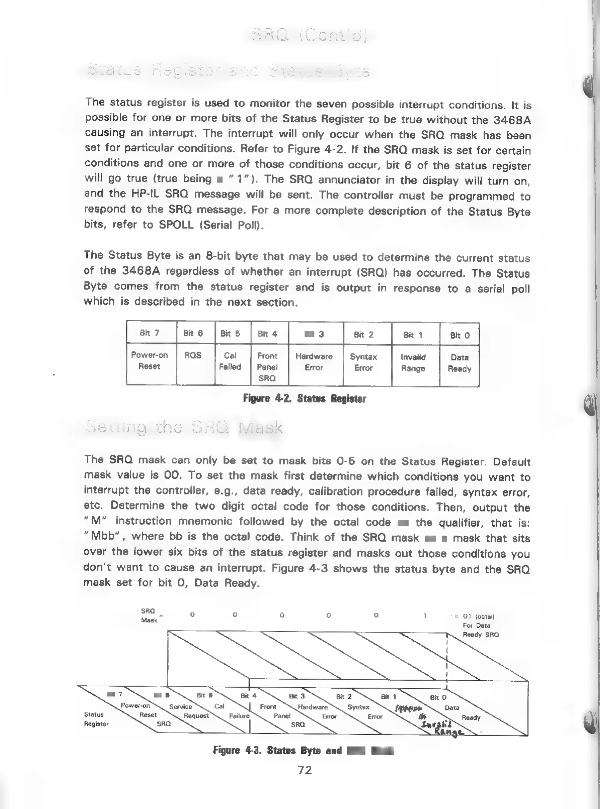 HP 3468A - Status Register; Status Byte and SRO Mask