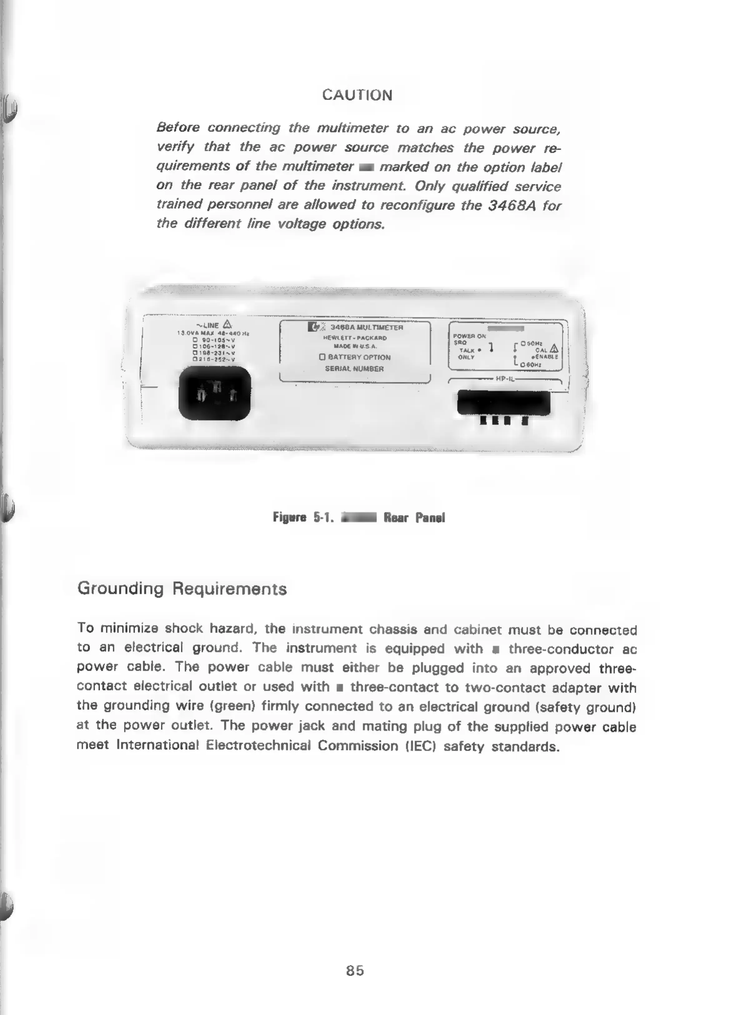 HP 3468A - 3468 A Rear Panel