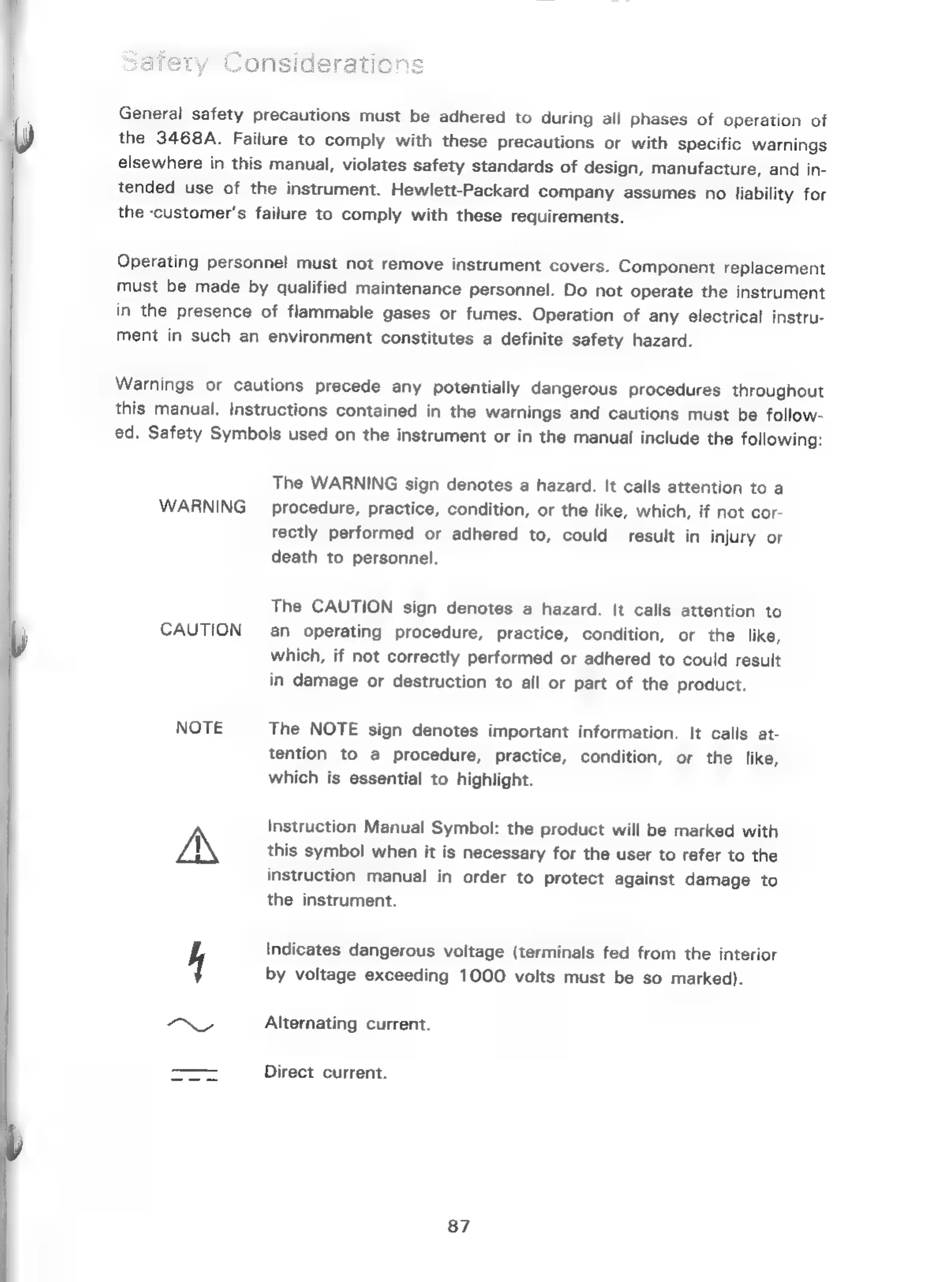 HP 3468A - General Safety Precautions