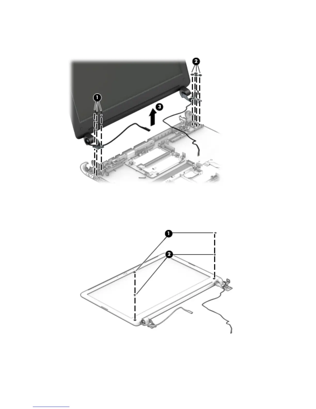 4. Remove the four Phillips PM2.5×3.25 broad head screws (2) that secure the display assembly right