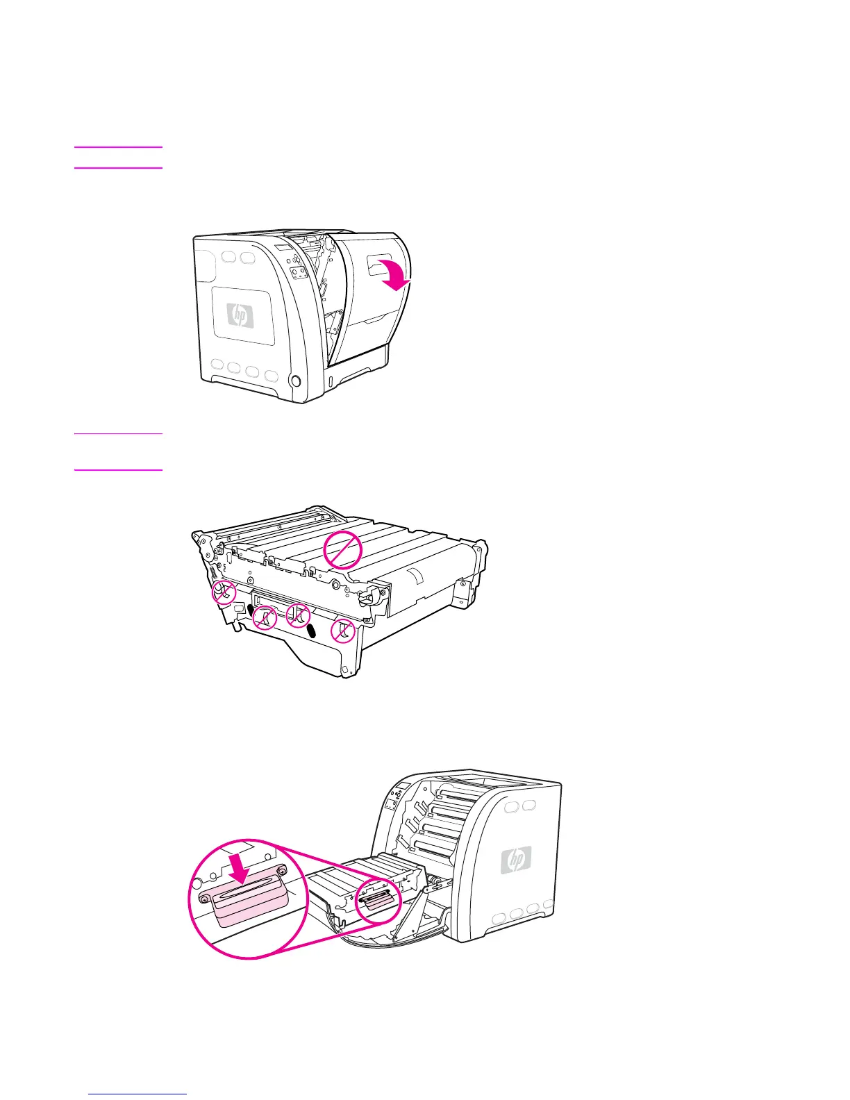 WARNING! Do not place anything on the transfer unit. Do not touch the top of the transfer unit or the contacts