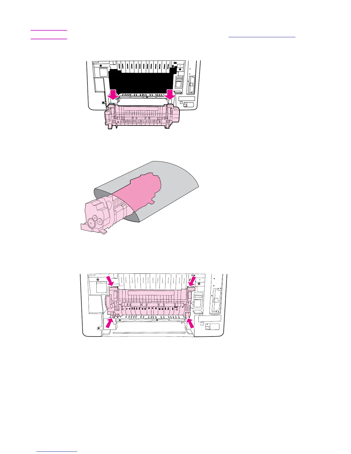 8 Hold the fuser with your thumbs on the blue ridges and fingers on the blue latches. Push both