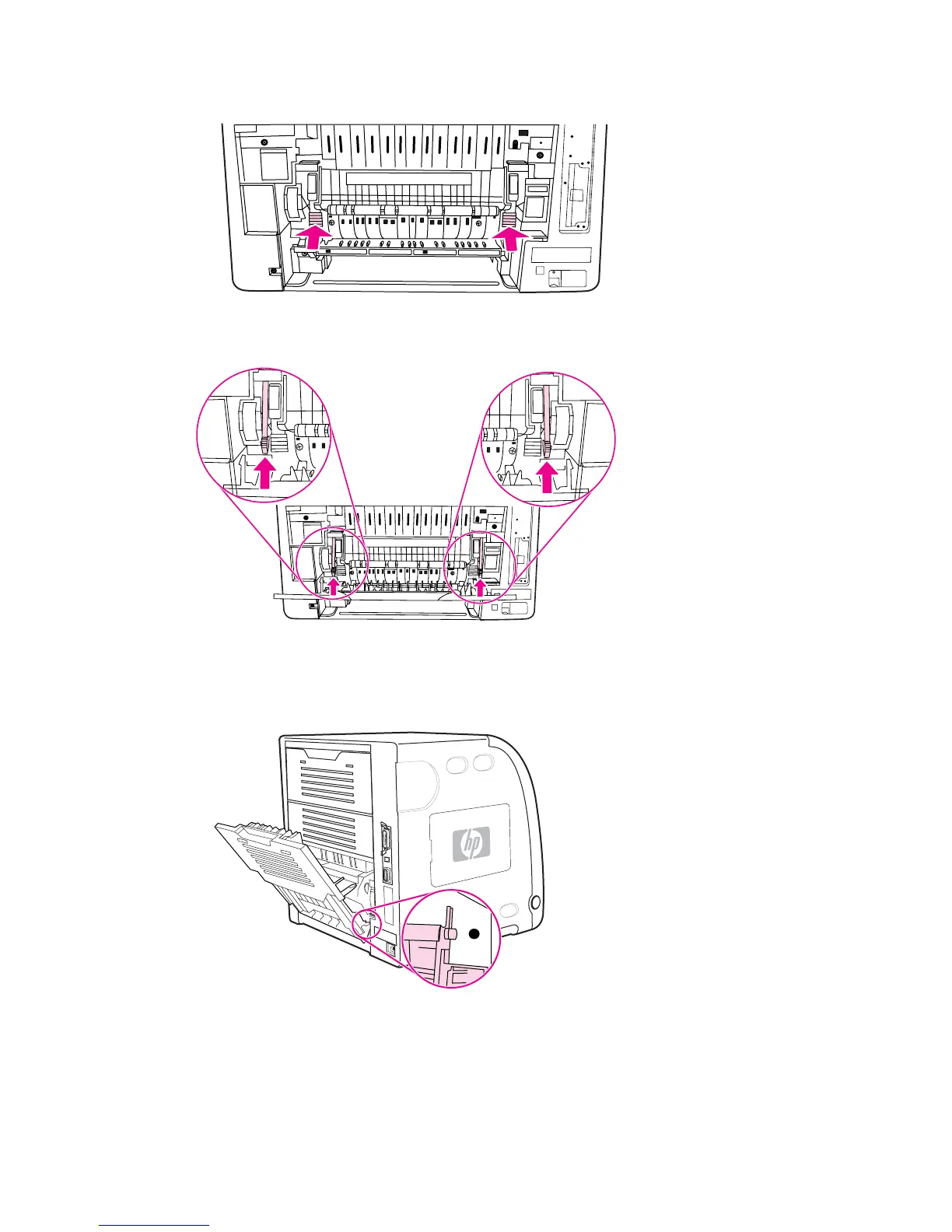 9 Press the black ridges on the front of the fuser until the fuser clicks into place.