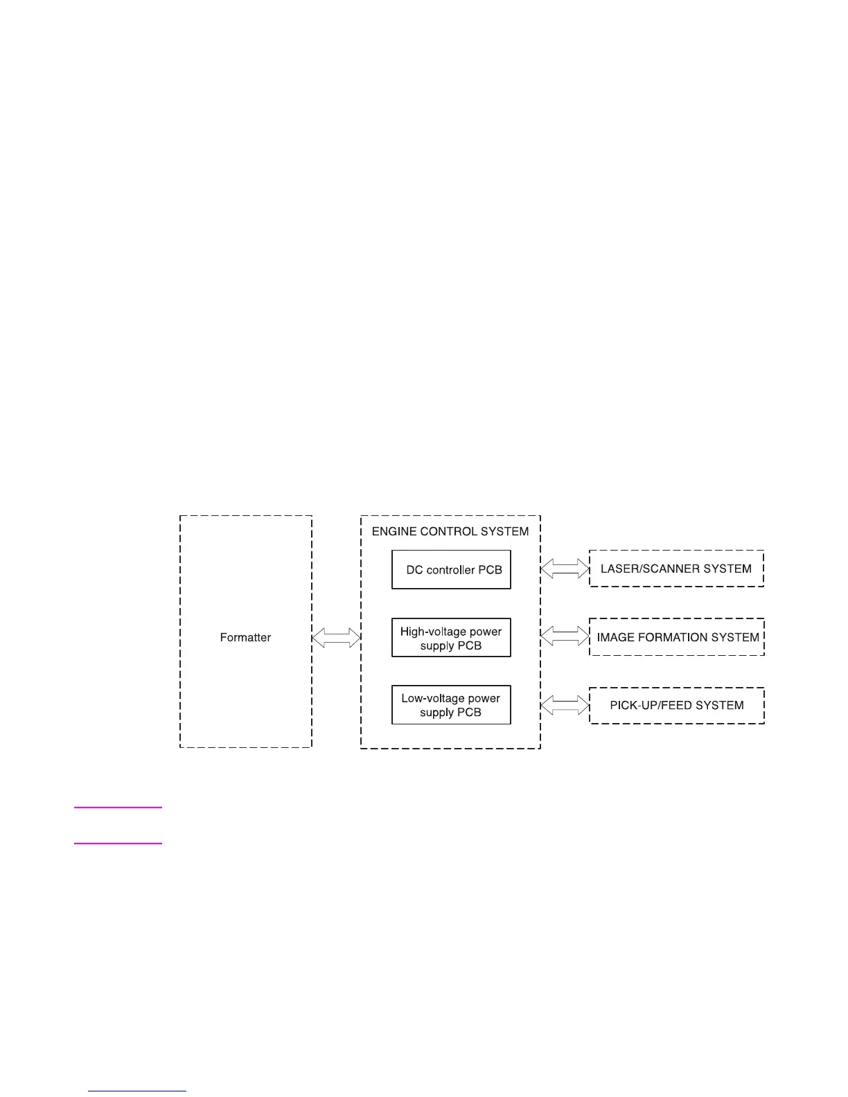 The engine control system functions as the brain of the printer. It controls the laser/scanner