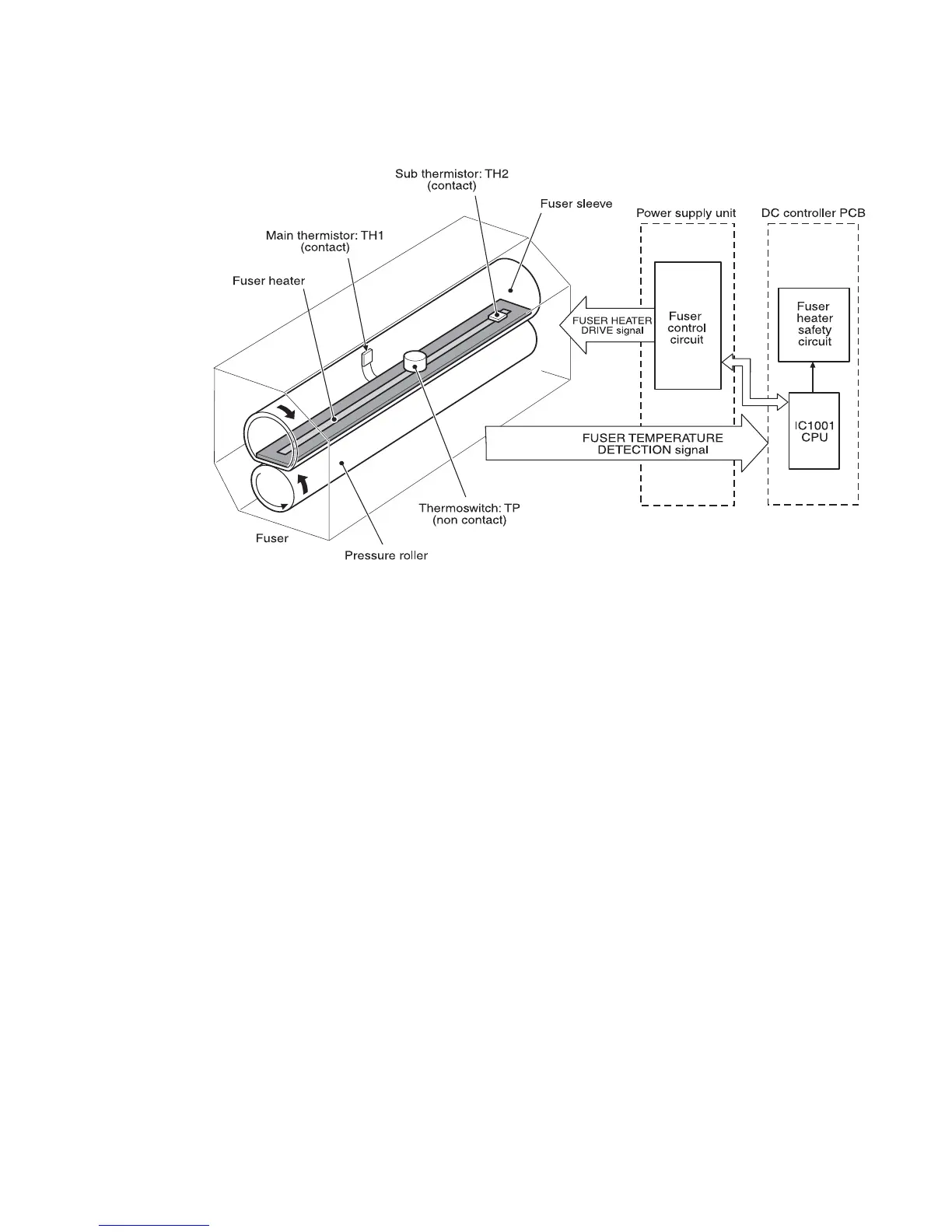 The fuser control circuit controls the temperature of the fuser. The following figure shows the