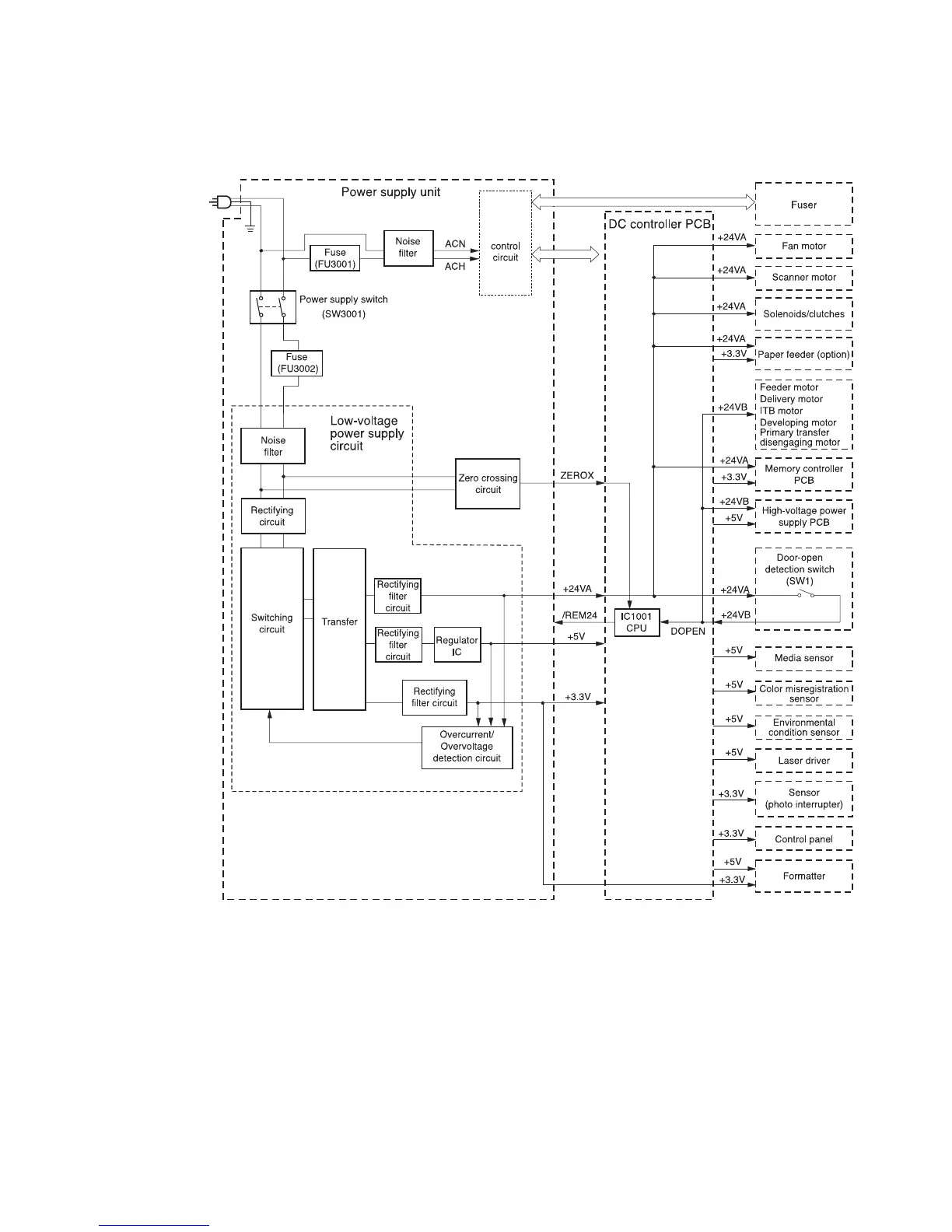 supply circuit, where it is converted to +24 V, +5 V, and +3.3 V DC power required inside the