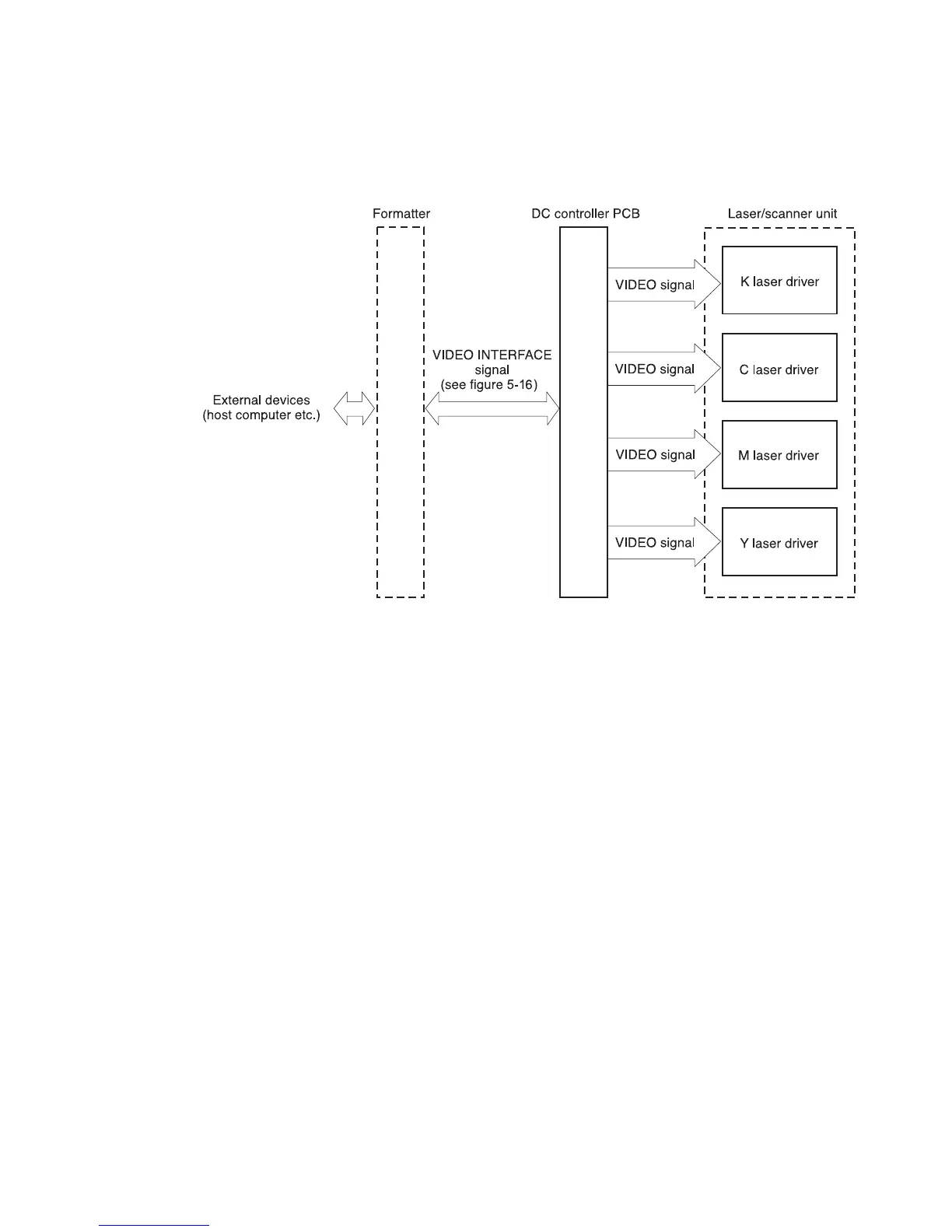 formatter uses the video interface to monitor the printer status continuously. It sends the VIDEO
