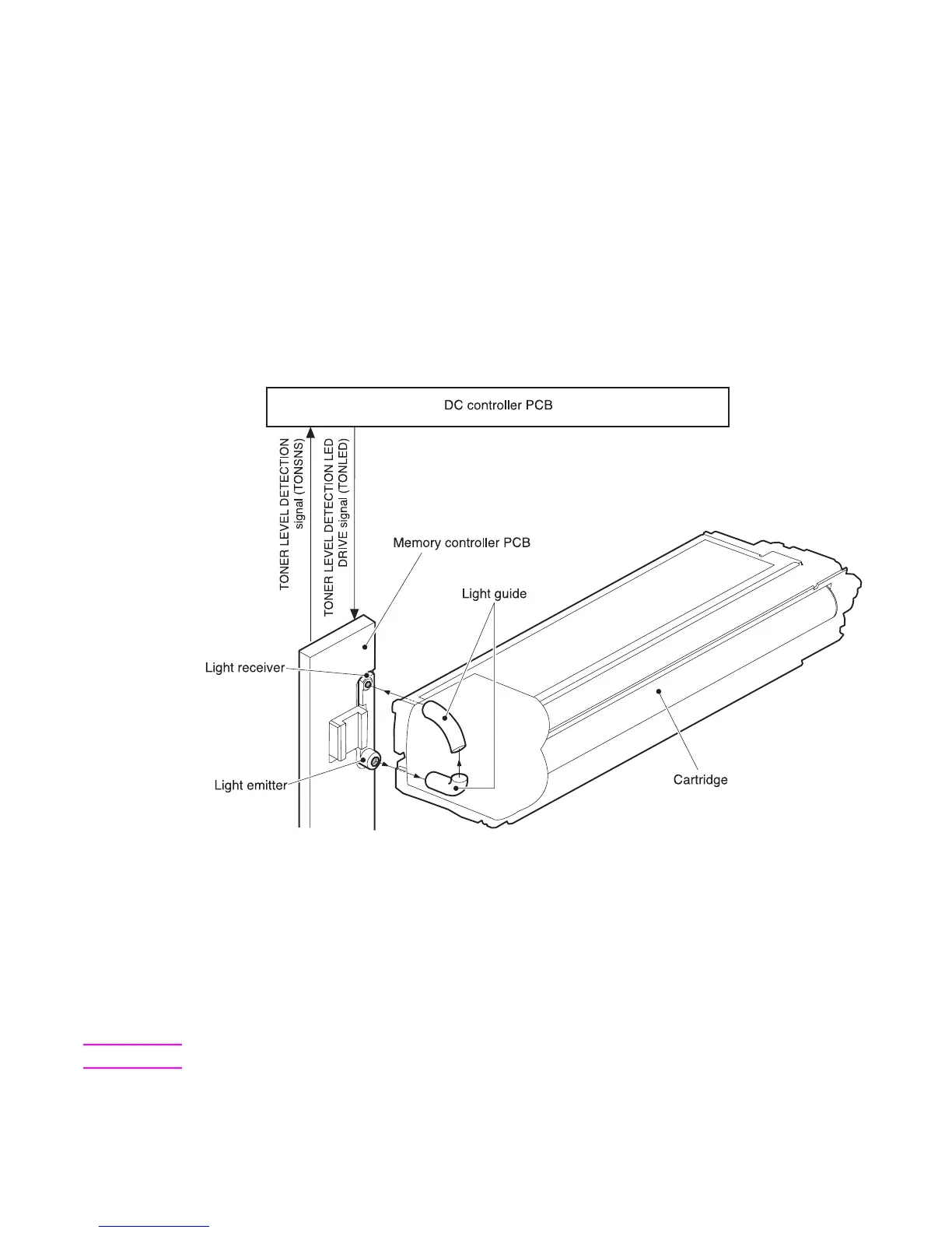 the receiver sends the TONER LEVEL DETECTION signal (TONSNS) to the DC controller.
