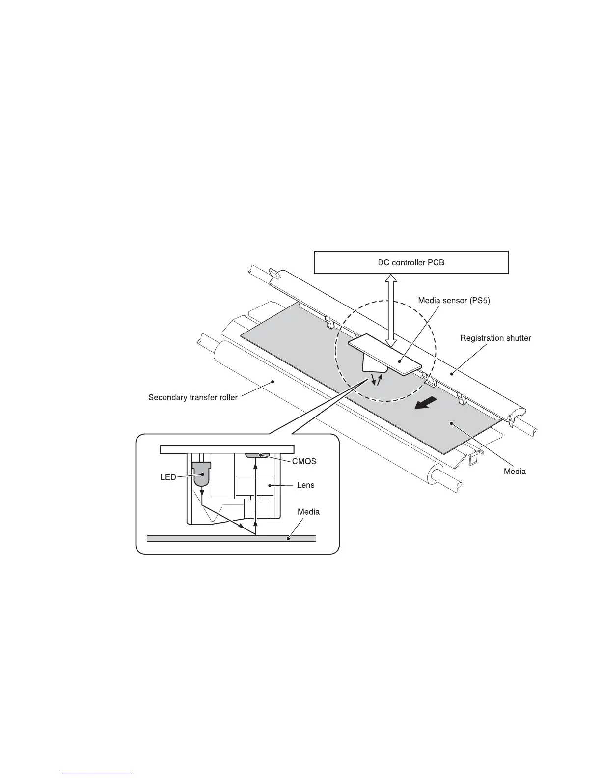 The DC controller turns on the PS5 when a fed sheet passes through the registration roller, then