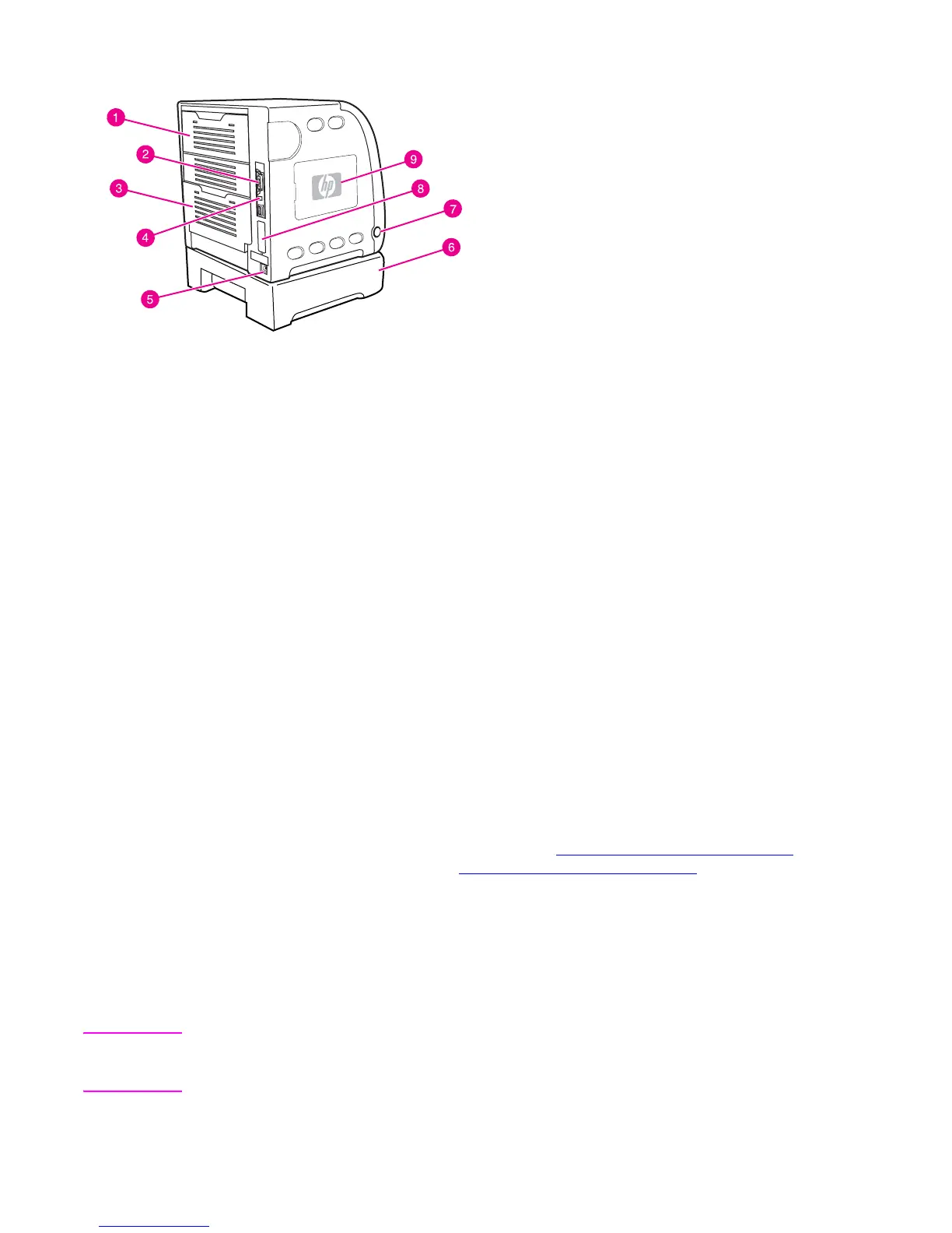 Figure 1-12 Rear view, HP Color LaserJet 3500 and 3700 series printers (shown with additional 500-