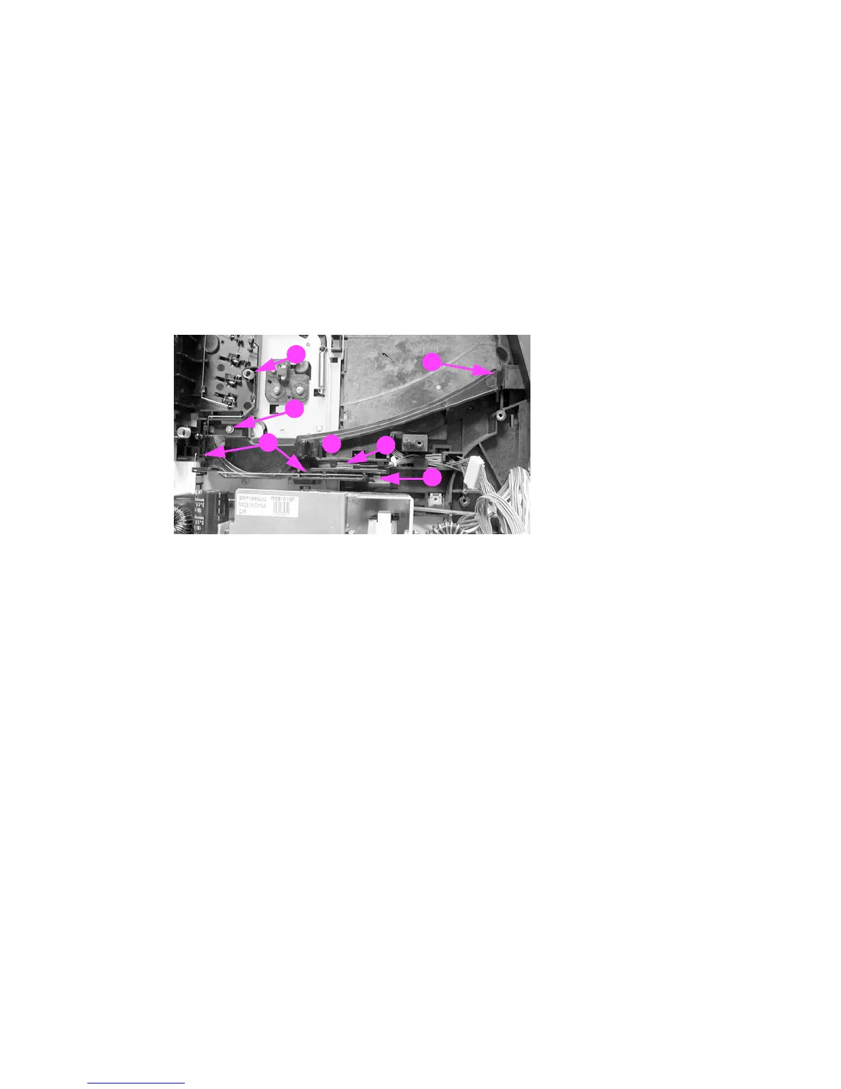 To remove the right swing rod guide, refer to the Pick-up/feed assembly removal, steps 1 through