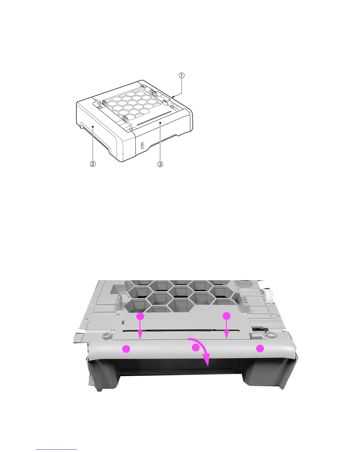 sheet paper feeder and Left cover removal - 500-sheet paper feeder.