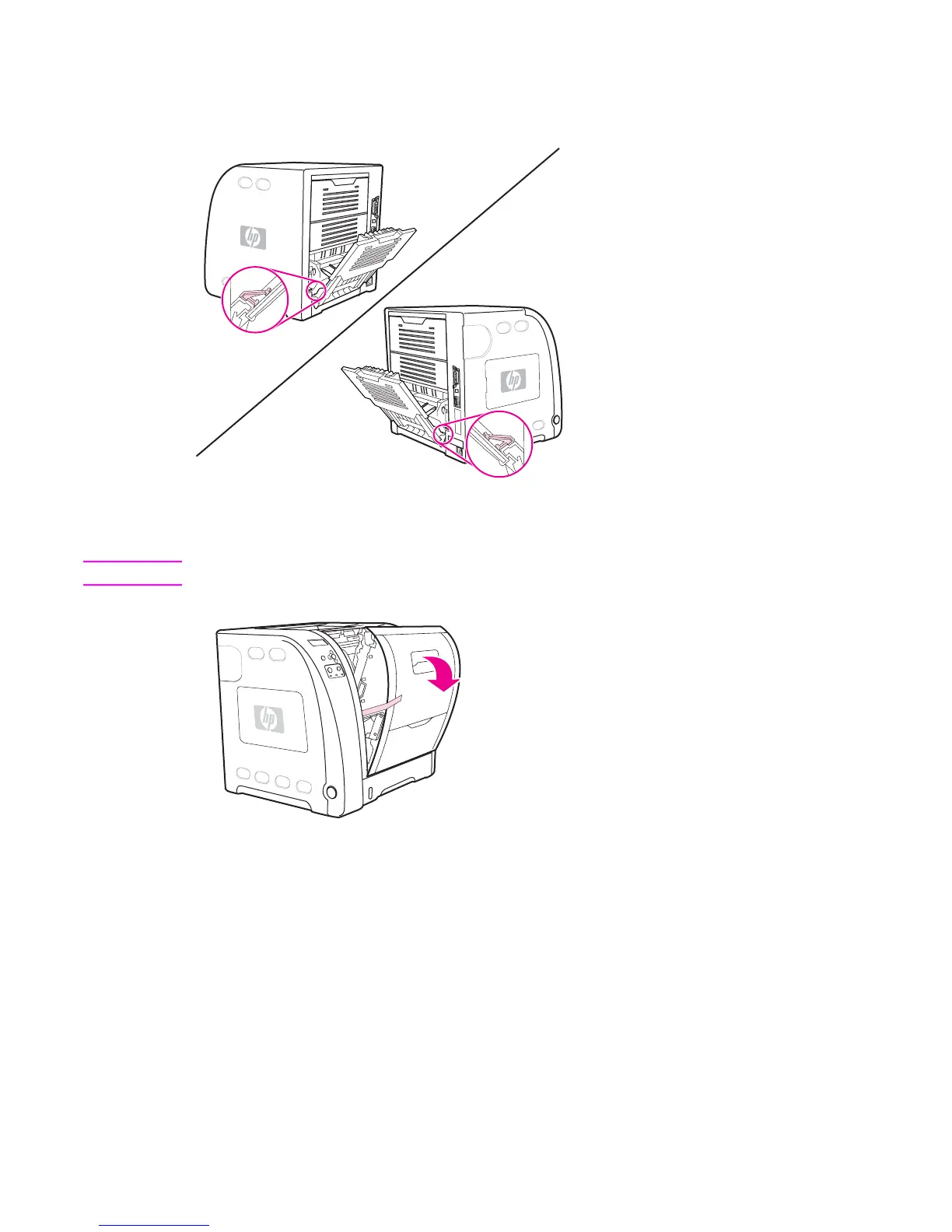 6 Open the lower rear door, and make sure that the two blue pressure release lever actuators