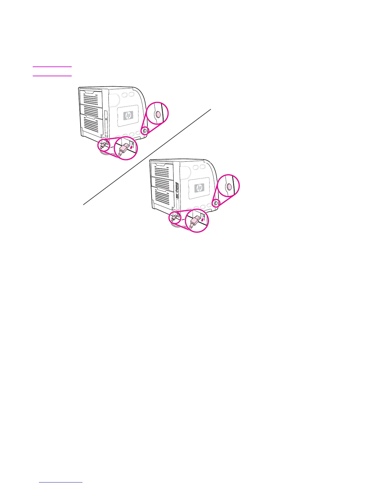 2 Turn the printer on. After a minimum of two minutes, the green ready light turns on.
