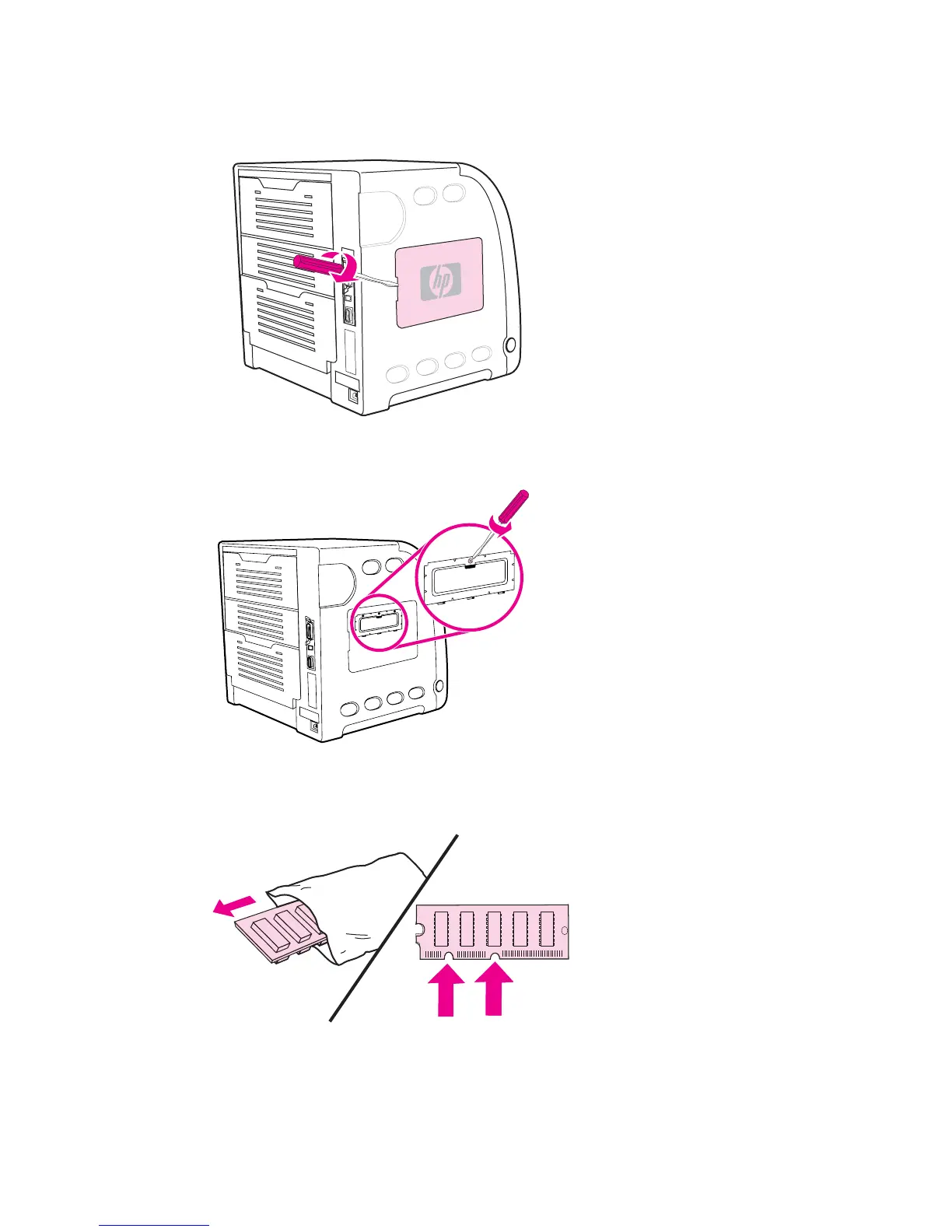 4 Loosen the screws that hold the formatter door to the printer and remove the formatter door.