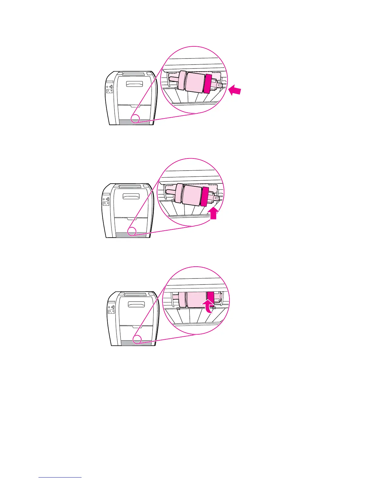 6. Push in on the pickup roller while lifting up on the right side of the pickup roller, so the