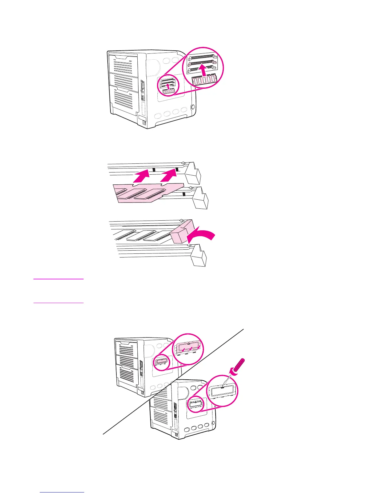 8. Align the formatter door in the tracks at the bottom of the slot, and turn the screw to
