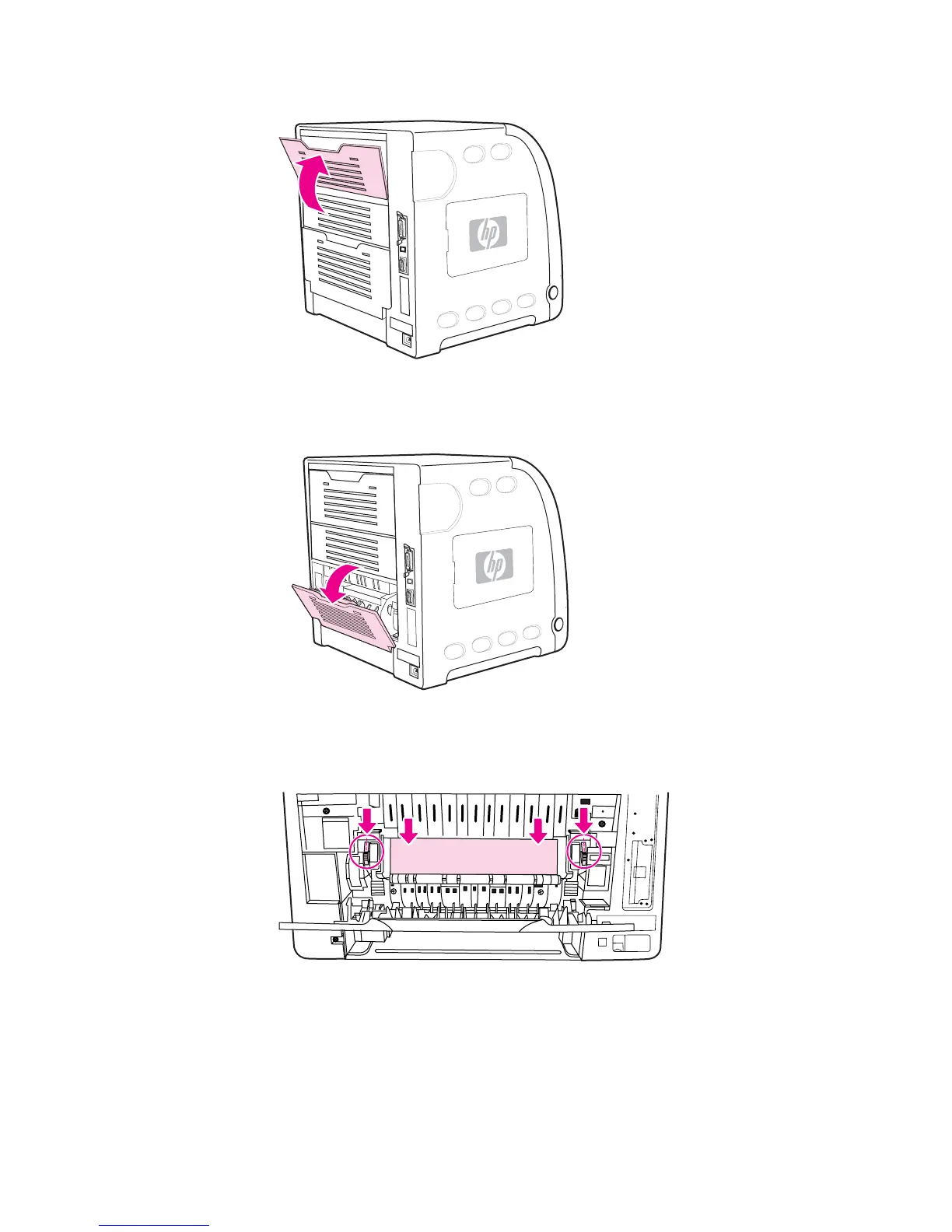 5. If no paper is visible, open the lower rear door (rear output bin).