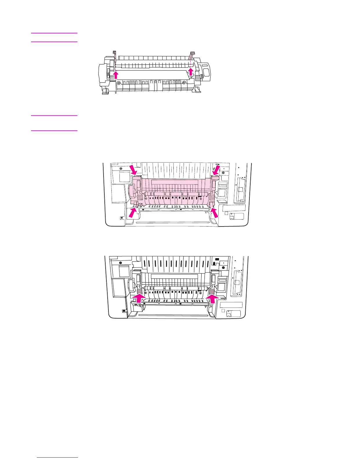 11. Press the black ridges on the front of the fuser until the fuser clicks into place.