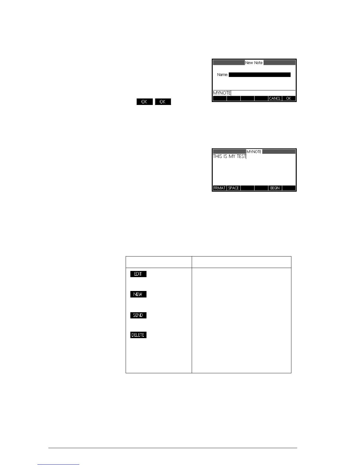 4. Write your note, using the note editing keys and