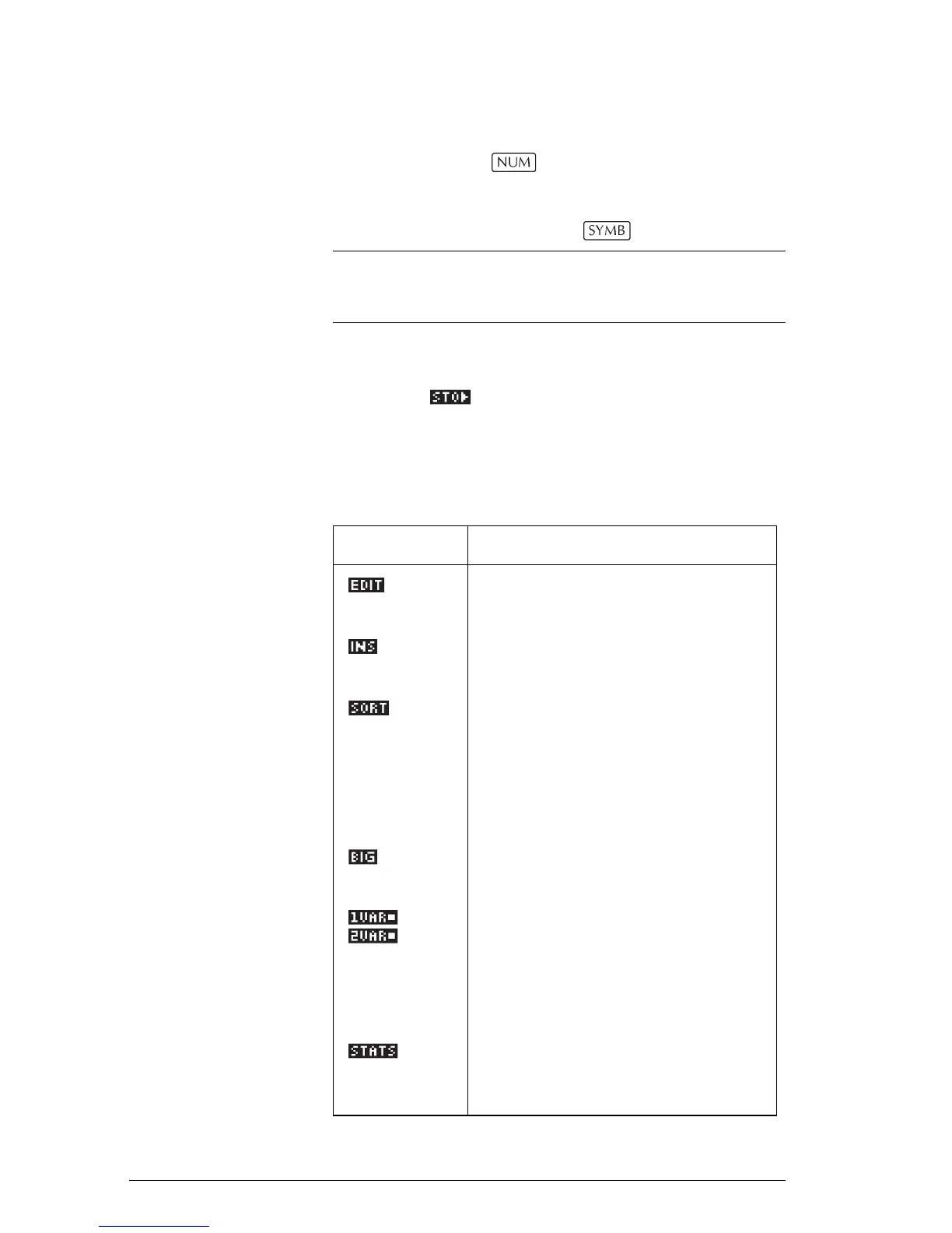 Statistics aplet’s NUM view keys