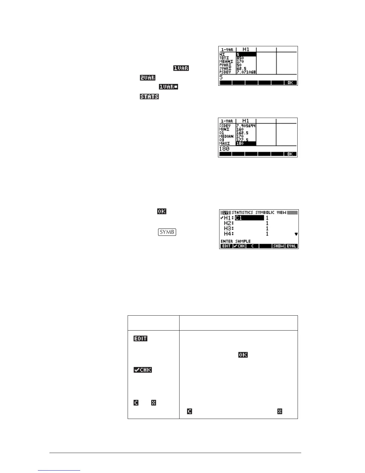 statistics calculated from the sample data in C1.