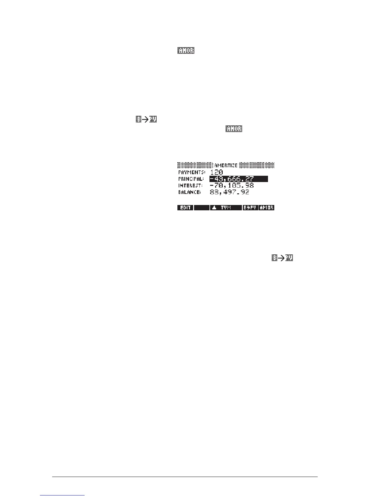 3. Press the soft menu key to amortize the new