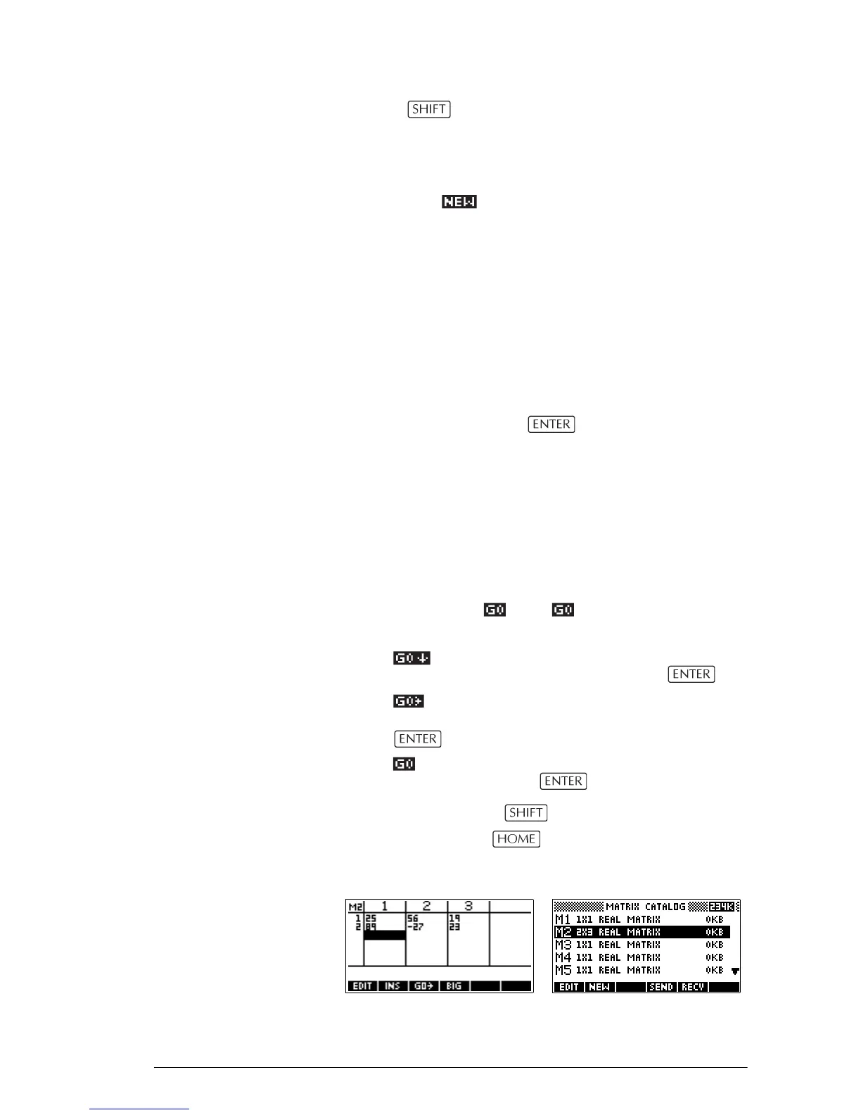 1. Press MATRIX to open the Matrix Catalog. The