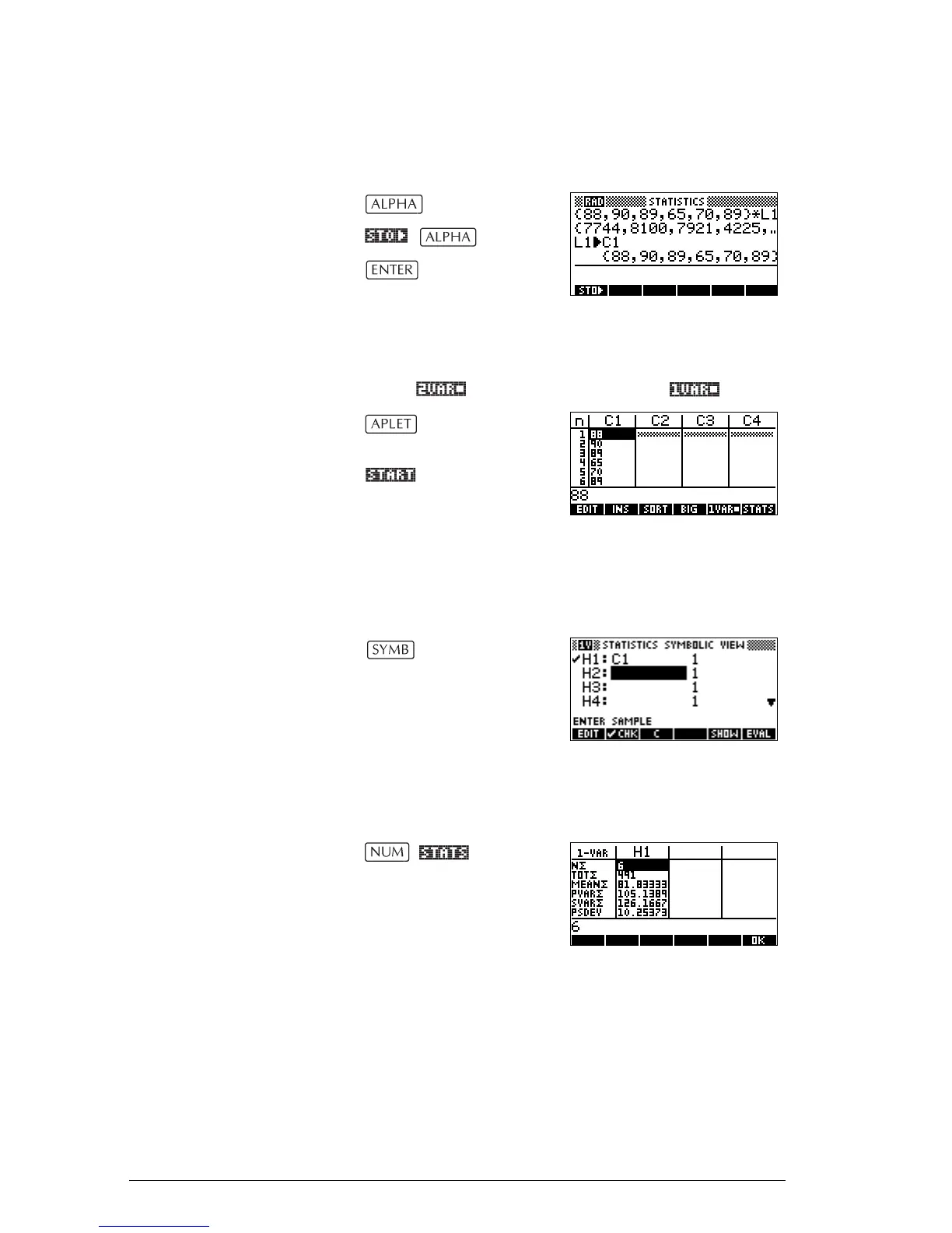 3. Start the Statistics aplet, and select 1-variable mode