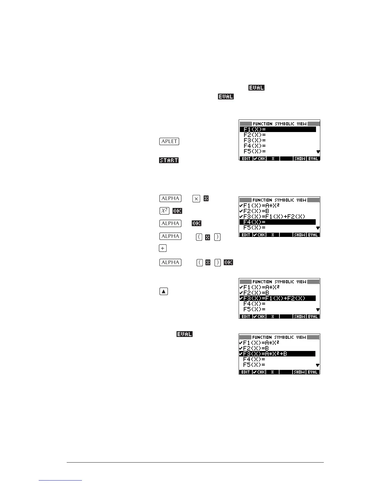 2. Enter the expressions in the Function aplet’s Symbolic