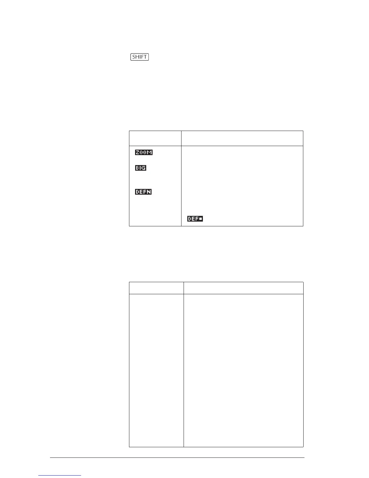 column. To cancel this display, press