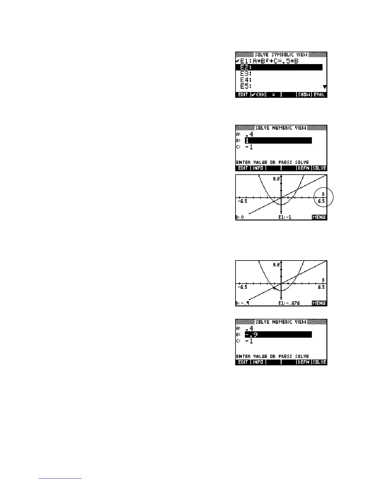 B by highlighting it, the calculator substitutes the supplied values in the NUM view into all