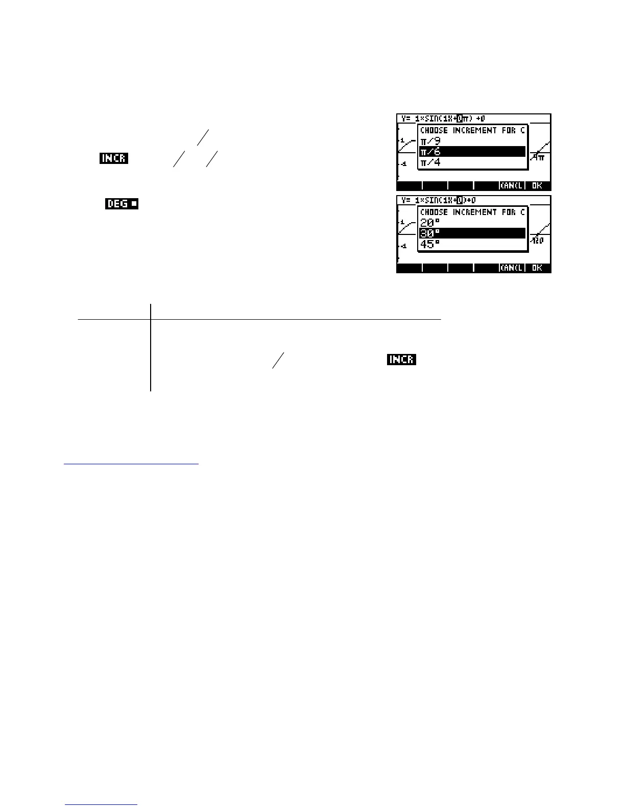 The c coefficient is shown as a multiple of π in radian mode rather than as a decimal. The currently active