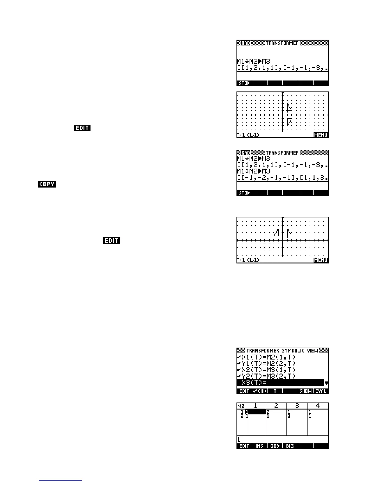 matrices they should investigate. Perhaps in the form of a set of cards with matrices and geometric trans-